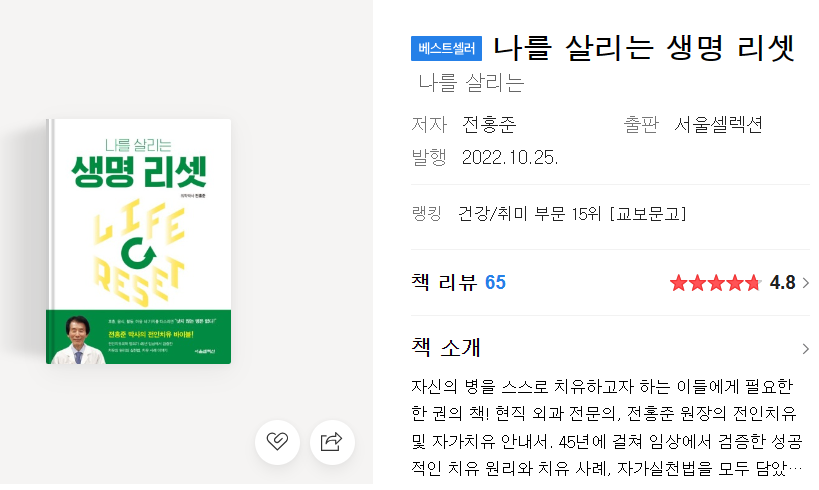 그리고 그 경험과 방법들을 집대성한 책이 생명리셋인데,